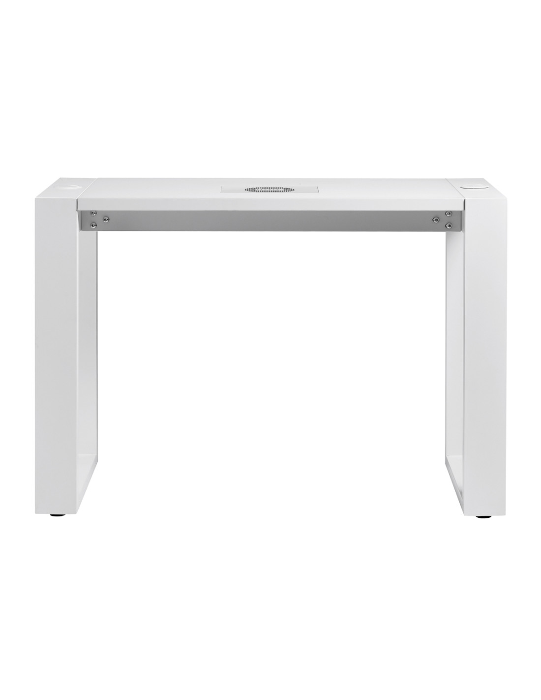 The G031 minimalist Nail desk is distinguished by its simple, geometric form and open leg design, which gives it a light and modern feel. It is perfect for beauty salons, providing a comfortable working space. The desk has special grommets in the tabletop for running cables from essential equipment, which makes it easy to keep the workstation tidy and aesthetically pleasing.