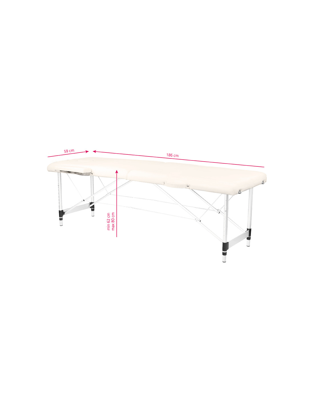 Folding Massage bed, aluminum comfort, 2-section cream