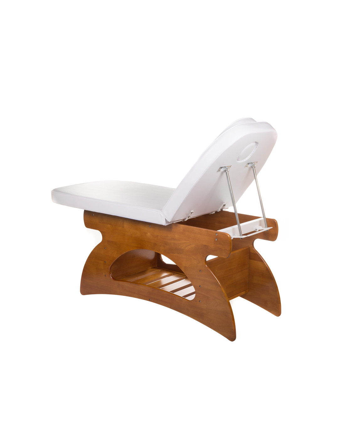 - Manually adjustable backrest angle – allows for tailored client positioning and comfort during various treatments.