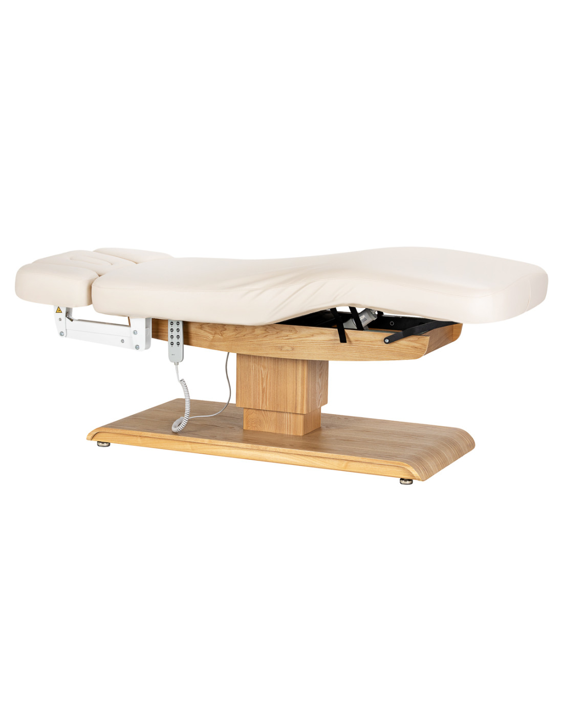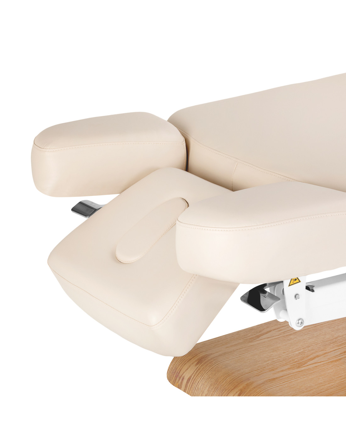 A modern treatment lounger with a solid wooden base combines maximum stability with exceptional style. Thanks to its design, which guarantees secure support, every cosmetic, beauty, relaxation or massage treatment becomes safe and comfortable – both for the client and the professional. The subdued colours and carefully finished details make the lounger a perfect fit for the elegant interiors of beauty salons, massage parlours, and SPA and wellness areas. The thoughtful design emphasises the professionalism of the salon, increasing customer confidence and raising the perceived value of the services offered.