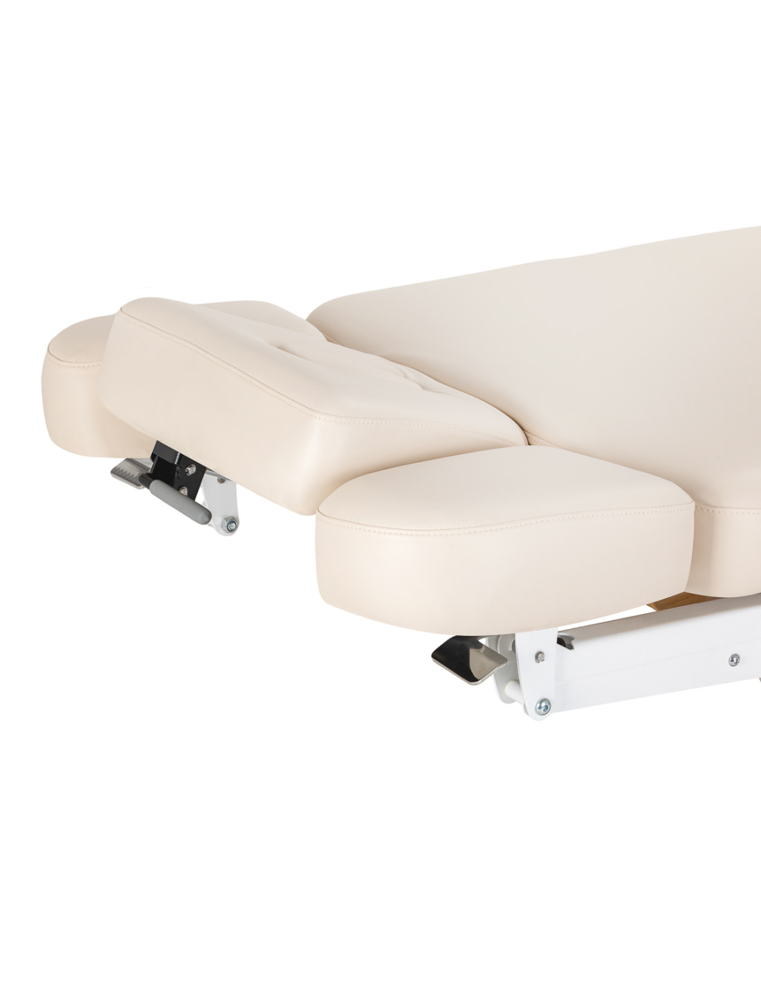 The headrest has been designed for maximum client comfort and functionality for the specialist. The main part is manually adjustable, allowing you to set the optimal head support position, while the side segments move up and down to adapt to the individual anatomy of the client's head and neck. This solution ensures a comfortable position during treatments, maintains the correct posture and increases the comfort of both the client and the person performing the treatment.