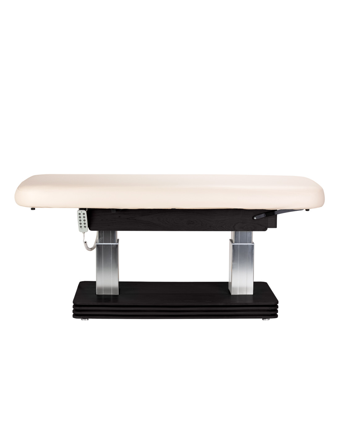 A modern treatment lounger with a solid wood and metal base ensures maximum stability and safety during treatments. The durable construction guarantees reliable support, so that cosmetic, beauty, relaxation and massage treatments can be carried out in comfortable conditions – both for the client and the specialist. Carefully refined details and subdued colours make this beauty lounger for massage salons and wellness areas a perfect fit for elegant, professional interiors. Its aesthetics and solid workmanship translate into a higher standard of service, strengthen customer confidence and increase the perceived value of the treatments offered in the salon.