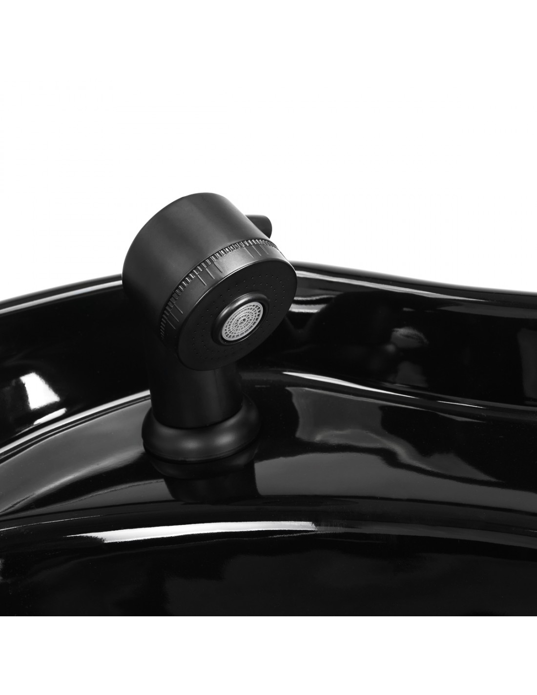 Depth of the ceramic basin bowl in shades of black, prevents excessive splashing of water and products used during the treatment. This allows to comfortable and effectively performing a wide range of hairdressing services. Mobility of bowl enables easy fit of inclination angle to individual needs. The material used makes the basin durable, resistant to discoloration and scratches, and very easy to maintain cleaness. A properly profiled collar ensures optimal support and comfort when washing your hair and comfortable cover from plastic in shades of black makes the customer will not feel any discomfort related to the coldness of the ceramic surface.