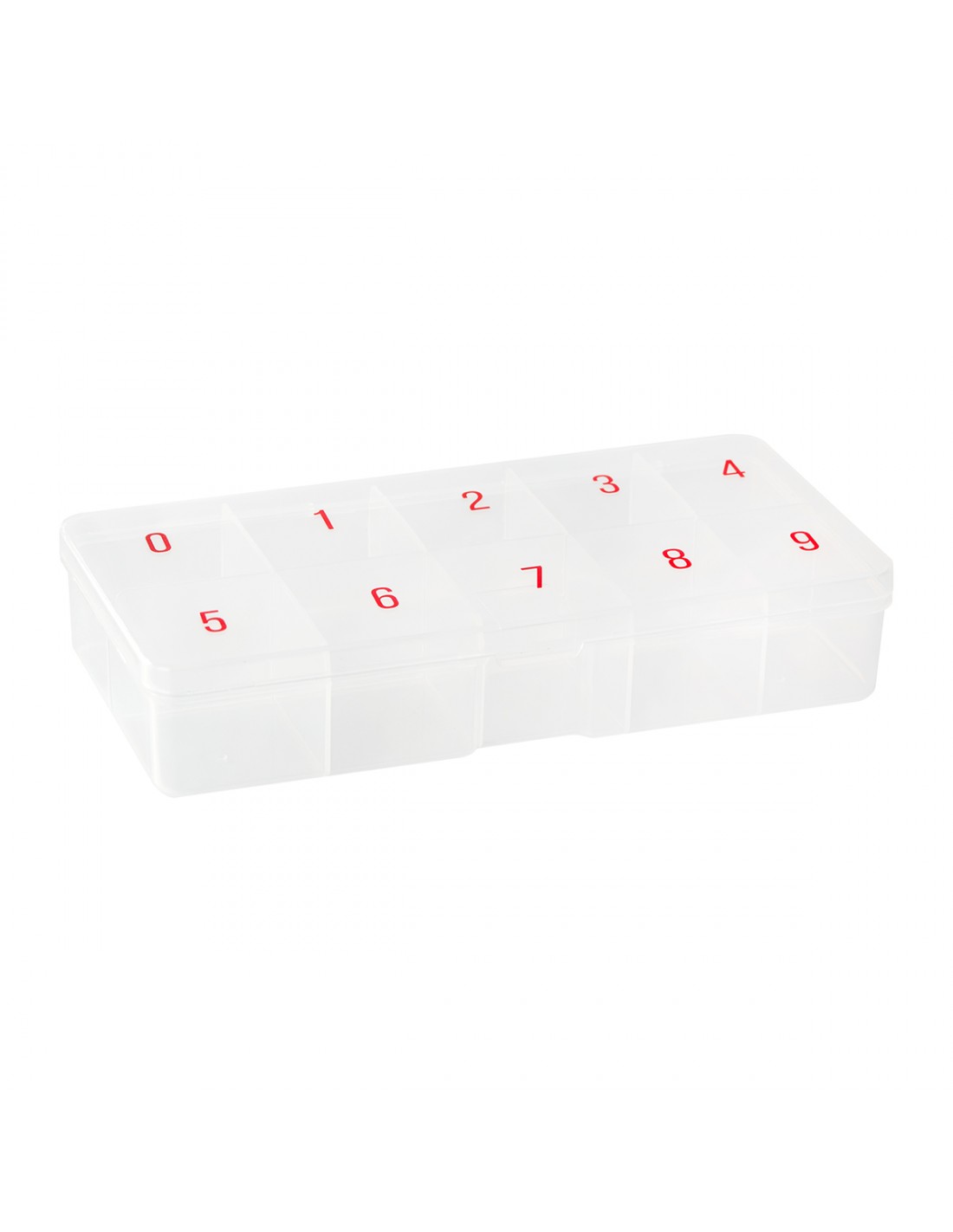A practical organizer with ten numbered compartments will allow you to organize small accessories for nail styling or eyelash extensions. Different-sized containers give you the opportunity to store decorations and nail tips of various sizes. The box will also work well for holding small utensils for other cosmetic procedures, and thanks to the closure, the products will not spill out during transport.