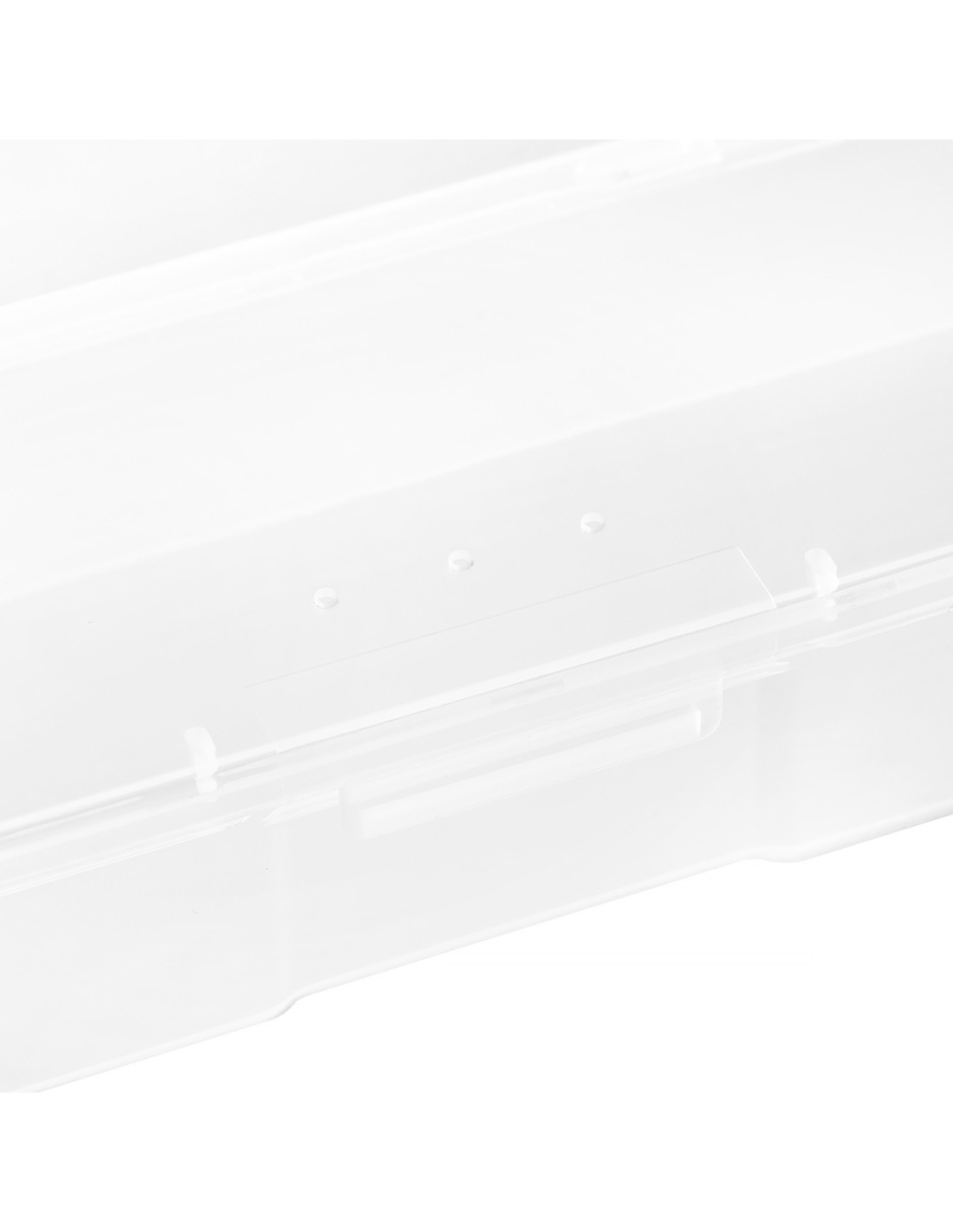 The practical container is made of plastic, making it durable and easy to clean. It allows you to maintain hygiene and order in the stored accessories. Openings in the lid allow air to flow in so as not to keep moisture inside.