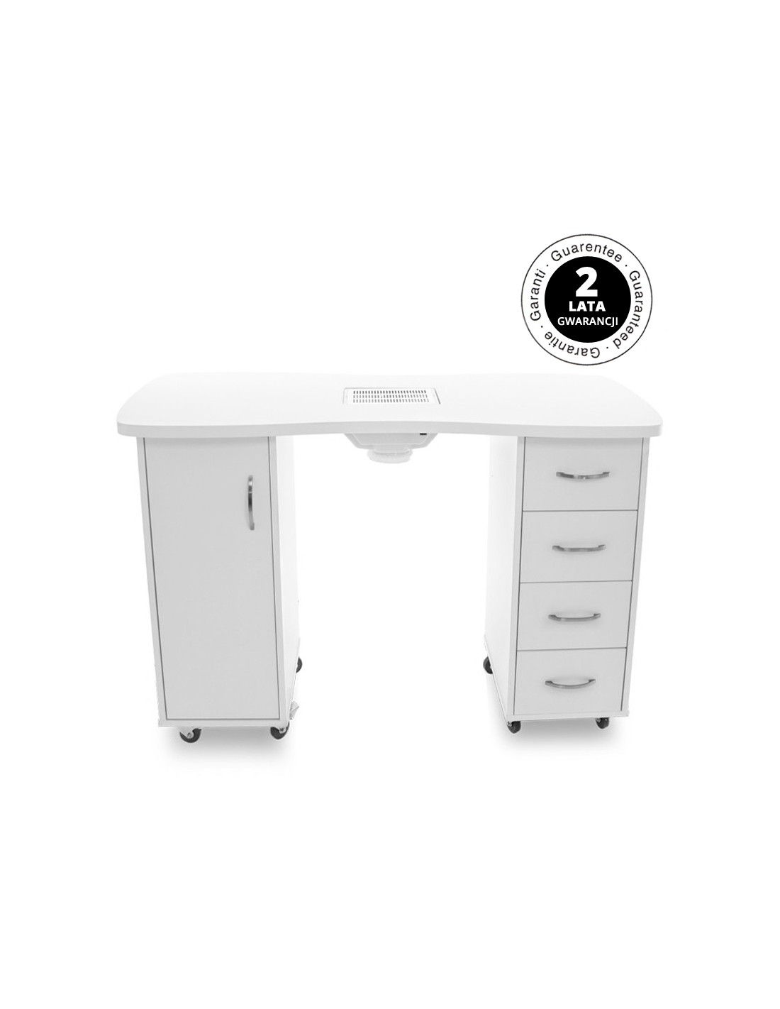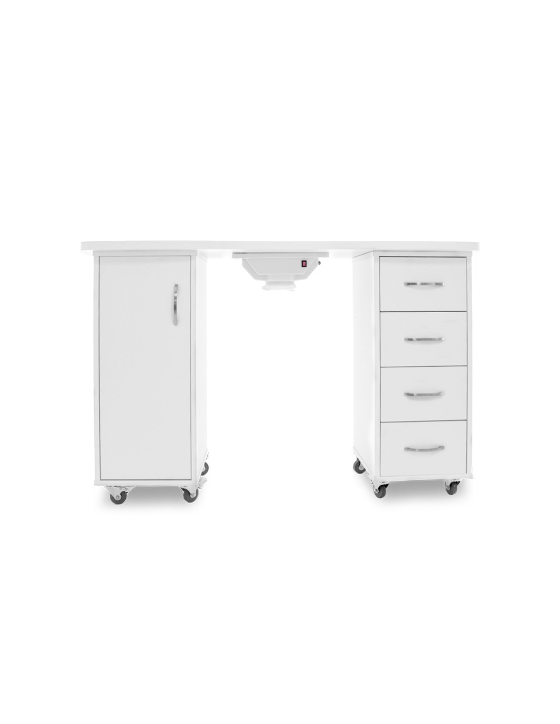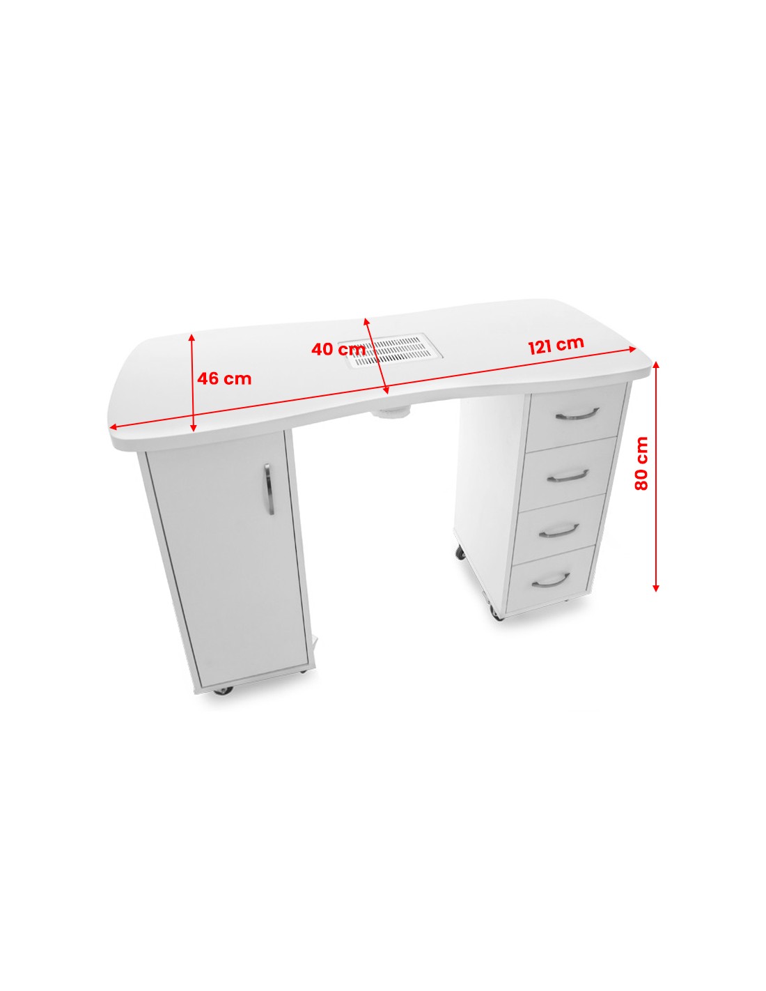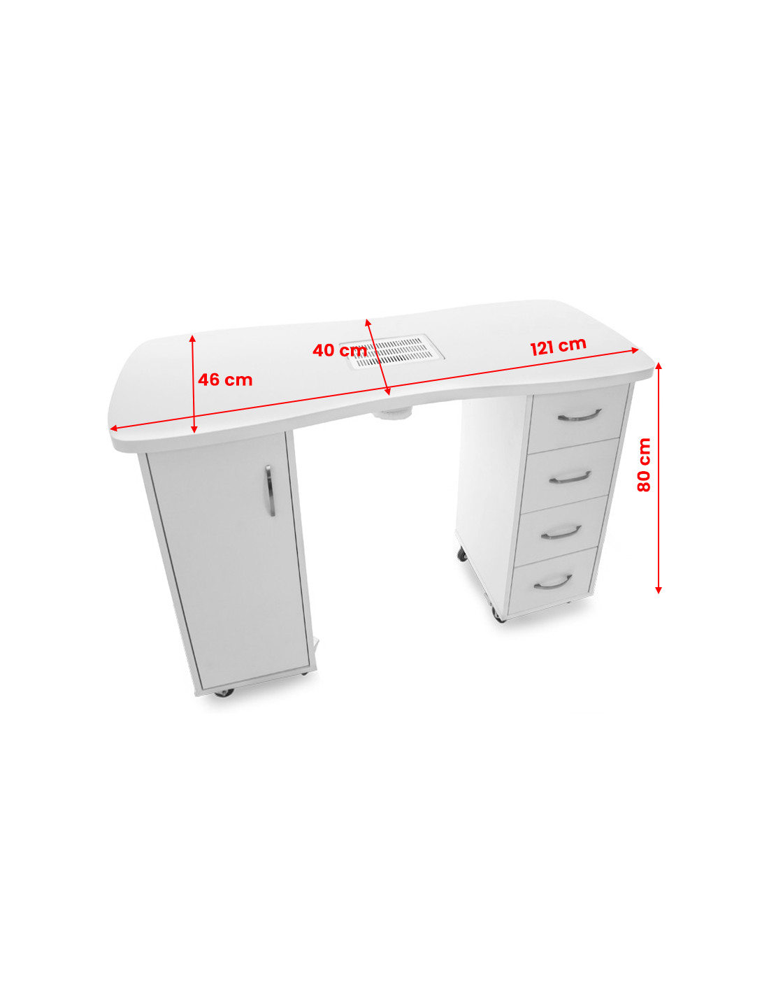 It is a piece of furniture not only functional, but also extremely elegant, perfectly matching the equipment of modern rooms. The Nail desk has a drawer, cabinets of various sizes and a dust collector. The furniture is stable and easy to move around the room, even when it is loaded.