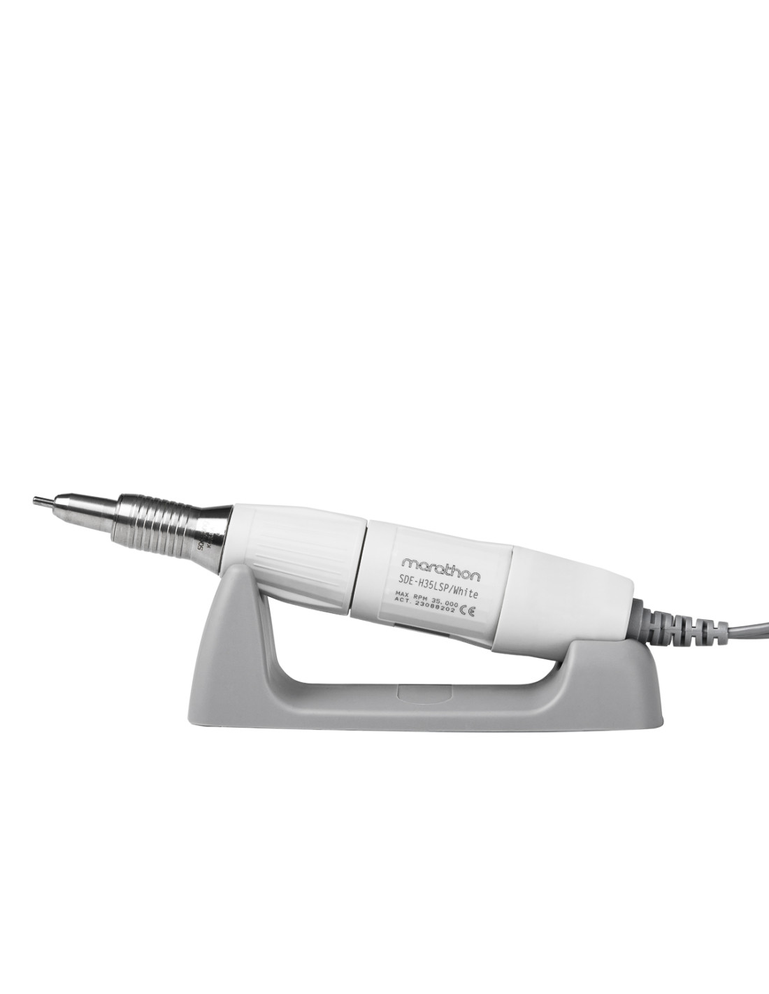 Precise handpiece of the H35LSP fits perfectly in the hand, which guarantees high comfort of use. It reaches a maximum speed of 35,000 revolutions per minute, affecting work efficiency. The handpiece is equipped with an easy-to-use Twist-Lock system, which facilitates quick and smooth drill bit changes. The pen is properly balanced and ergonomically profiled, and in addition, the vibrations of the handpiece have been reduced, so that even many hours of work with the nail drill do not tire the hand excessively. The plastic casing restricts heat transfer so that the heating of the device is not noticeable. The flexible spring cable provides high comfort of work, reaching up to 135 cm in length with significant stretching.