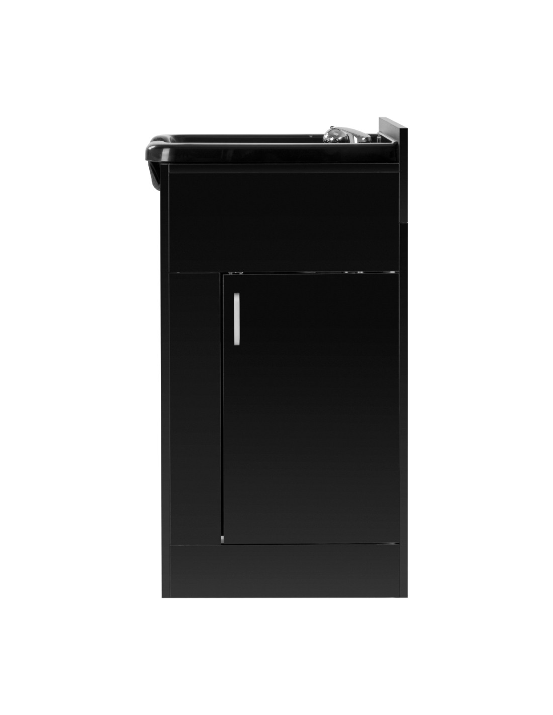 The side door provides easy access to the installation and allows storage of the most necessary products in a discreet way. The rear hole for the water connection allows for convenient and aesthetic connection of the station, while at the same time making it possible to hide the pipes and drain, which promotes maintaining order and a professional appearance of the station. The compact form of the furniture makes it ideal for both large salons and smaller spaces.
