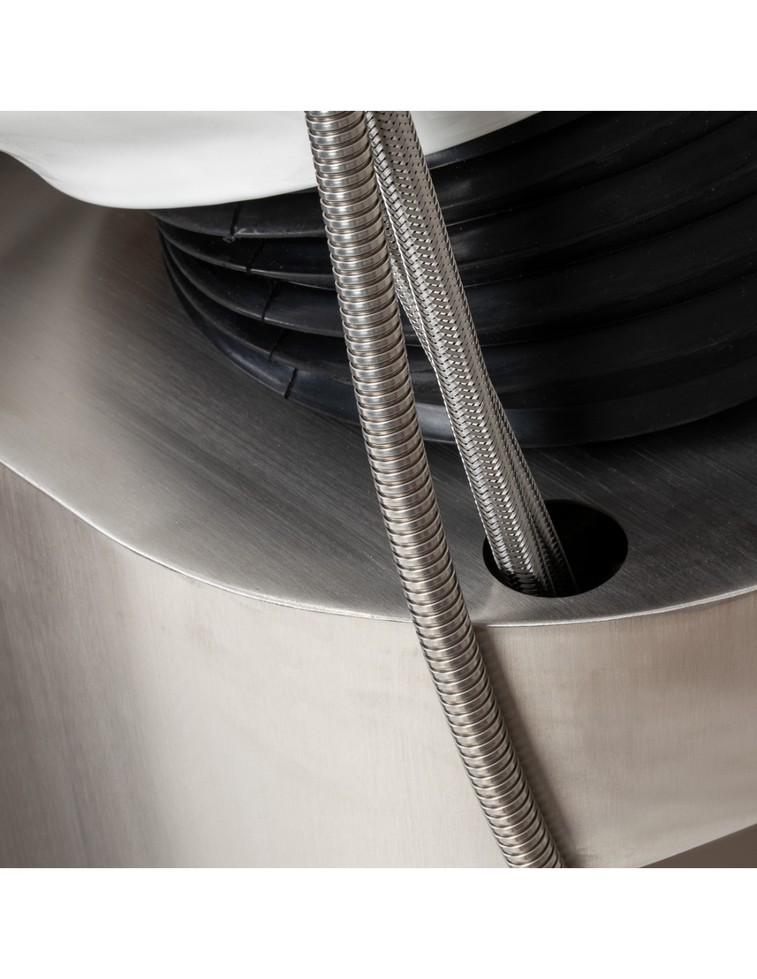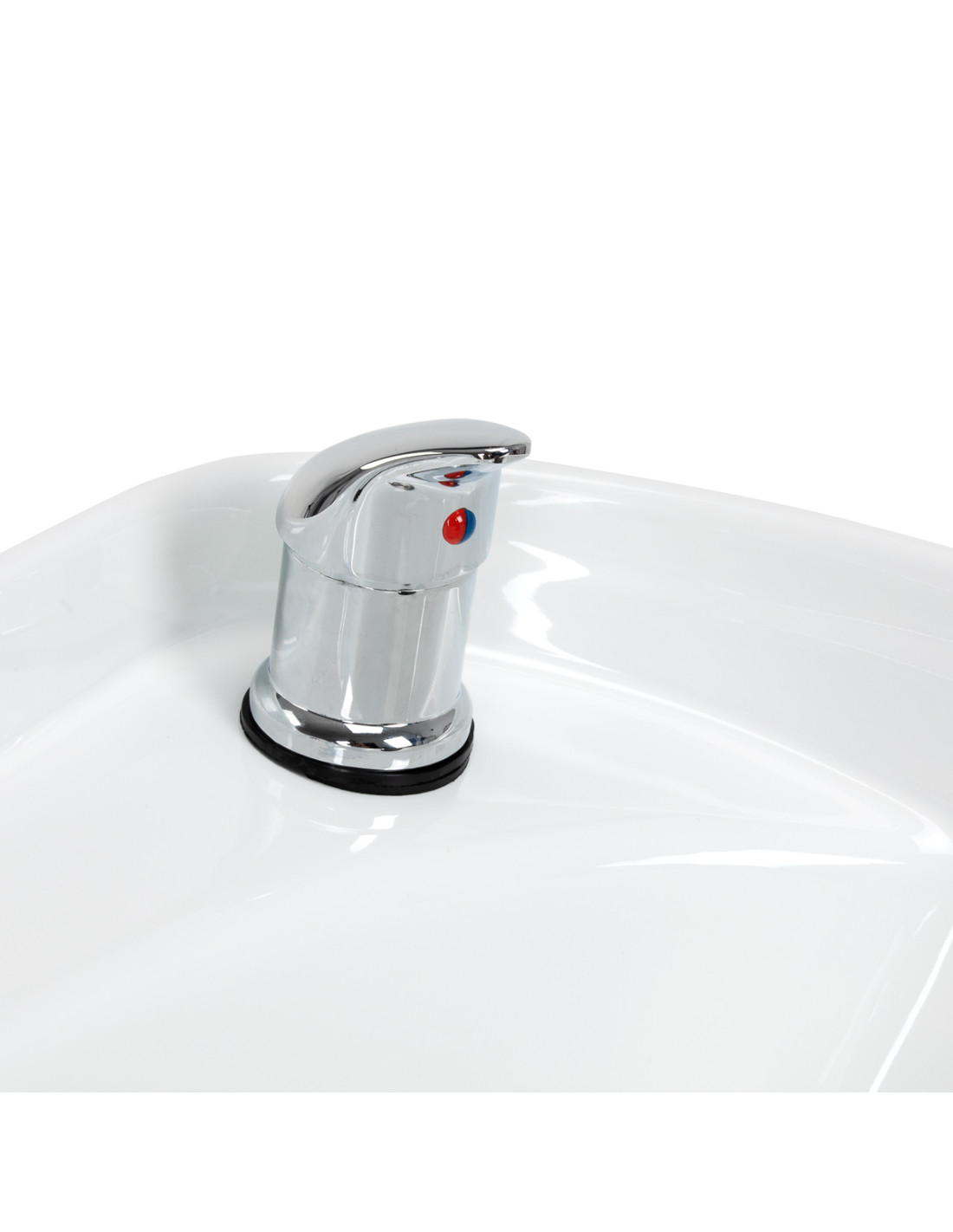 The depth of the ceramic washbasin bowl in shades of white allows for comfortable and efficient performance of a wide range of hairdressing services, preventing excessive splashing of water and products used during the treatment. The material used makes the washbasin durable, resistant to discoloration and scratches, and very easy to keep clean. The appropriately profiled collar and inclined backrest provide support and comfort while washing hair, and thanks to the comfortable plastic overlay in shades of black, the client will not feel discomfort from the cold ceramic surface.
