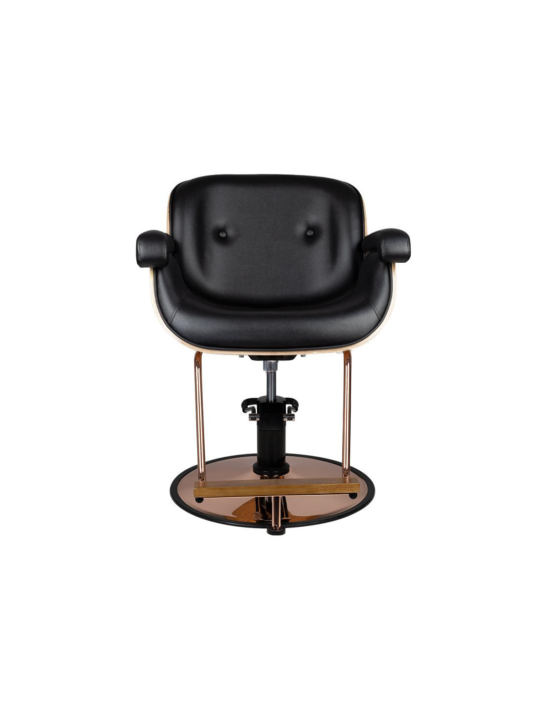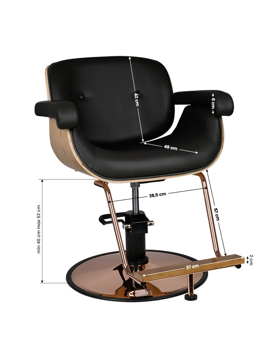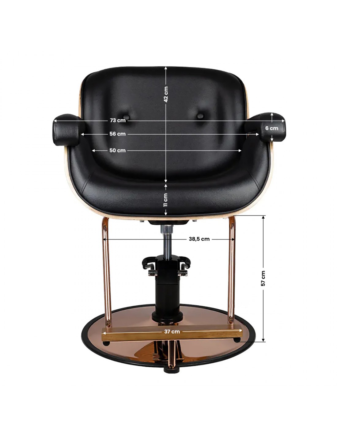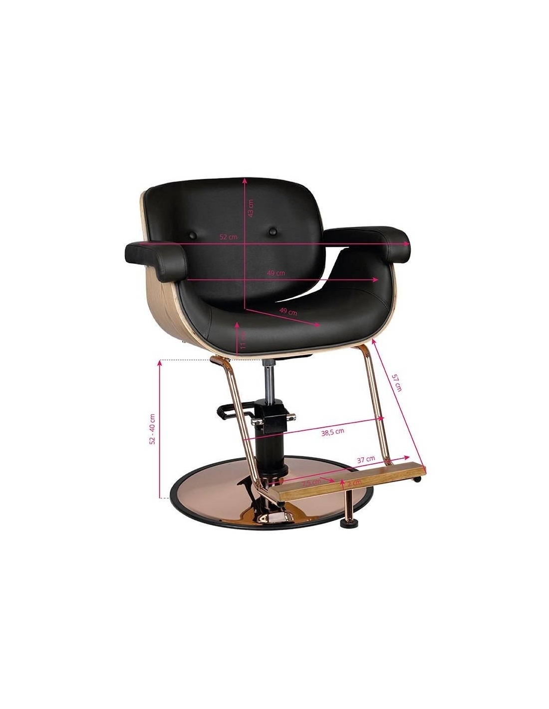 Gabbiano Stylish Styling chair.Very comfortable, perfectly matching the interiors of elegant hair salons.Adjustable in the vertical plane. Very stable and solid. Upholstery made of the highest quality black eco-leather.The elegance of this armchair is complemented by the golden finish of the metal elements. Available in gold and black leather. If you...