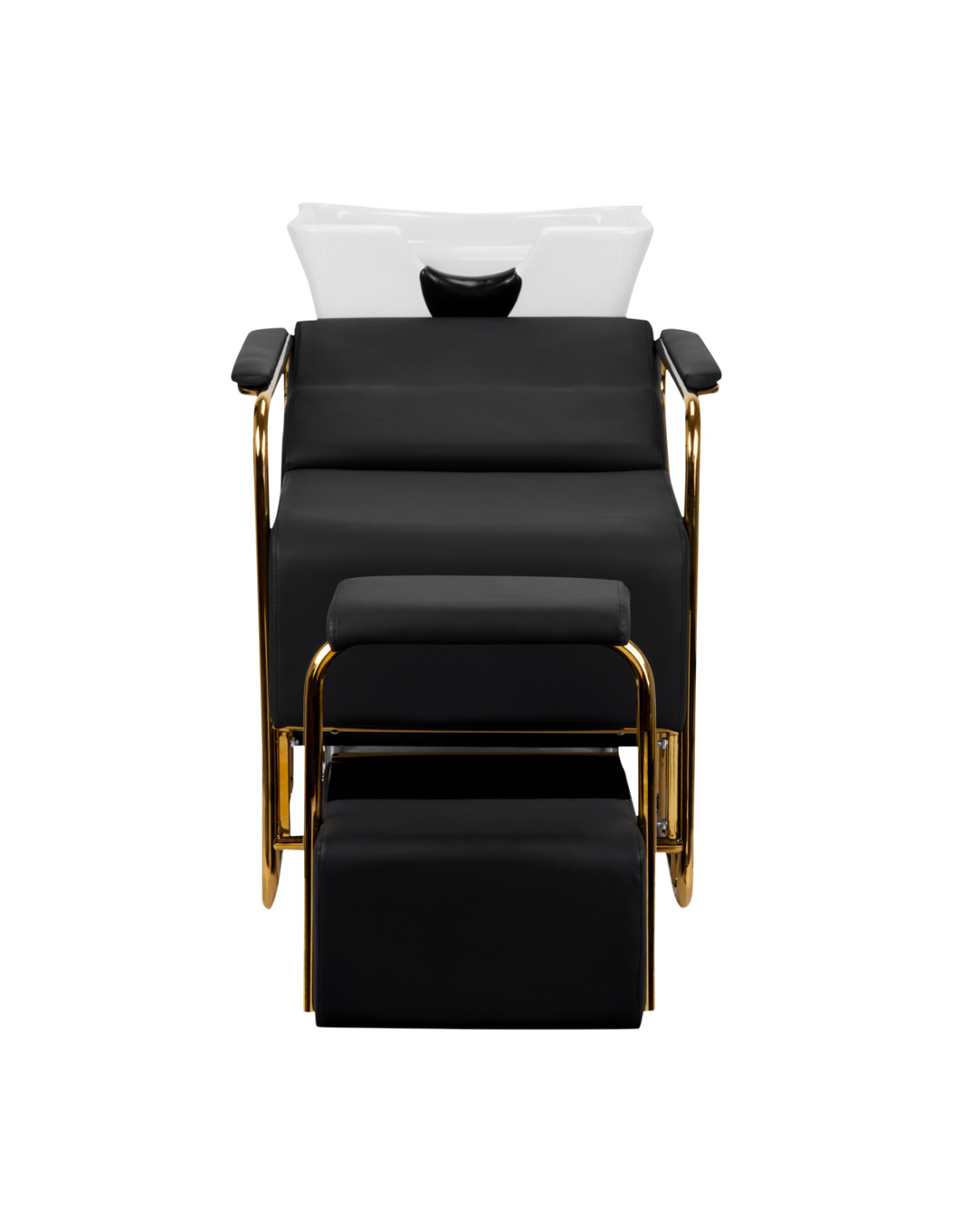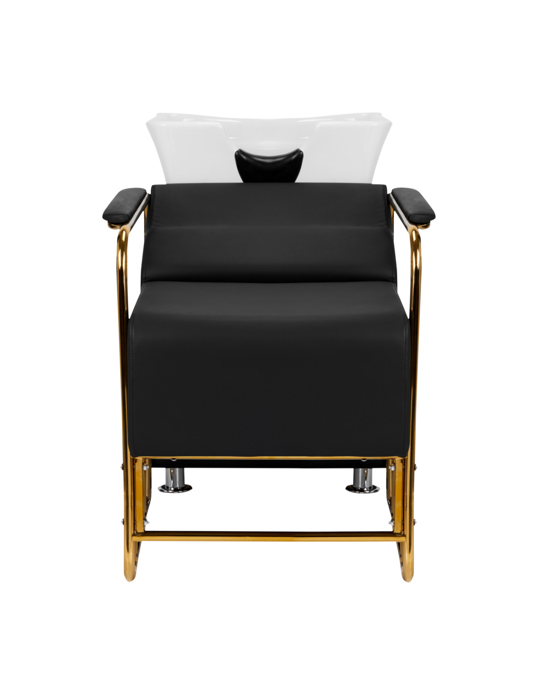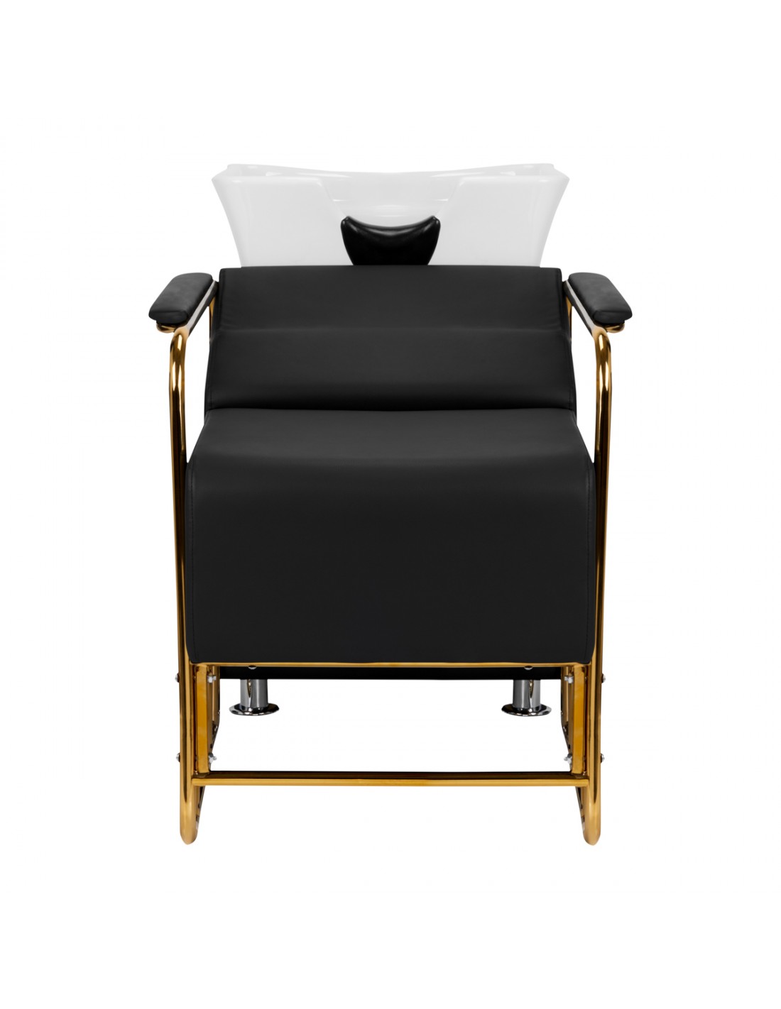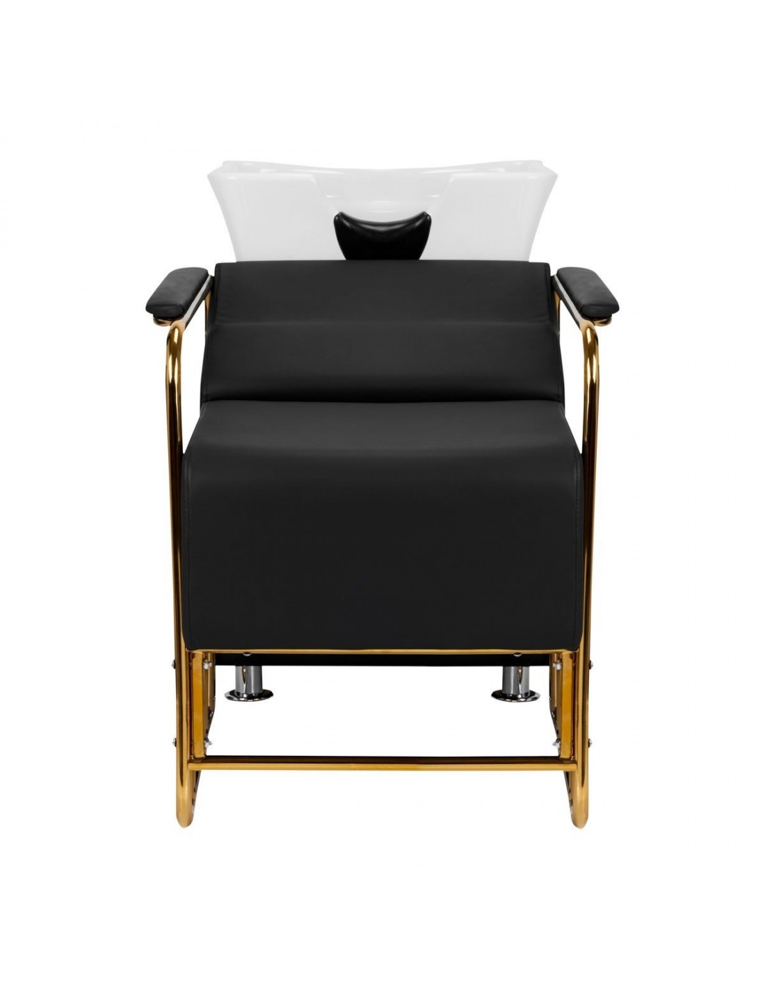 The modern Gabbiano Salon washbasinbasin is a combination of functionality and Italian elegance. It's also perfect for pedicure treatment too. The backwash unit is made of the highest quality materials and perfectly finished. We know how important the client's comfort is during treatments, which is why the special design provides the client with solid head support while washing. The soft and extremely comfortable seat is covered with high-quality gray eco-leather. The backwash has a white ceramic bowl and gold armrests. The perfect piece of furniture for modern interiors. Painted metal surfaces.