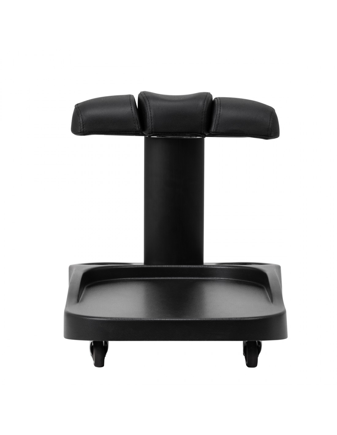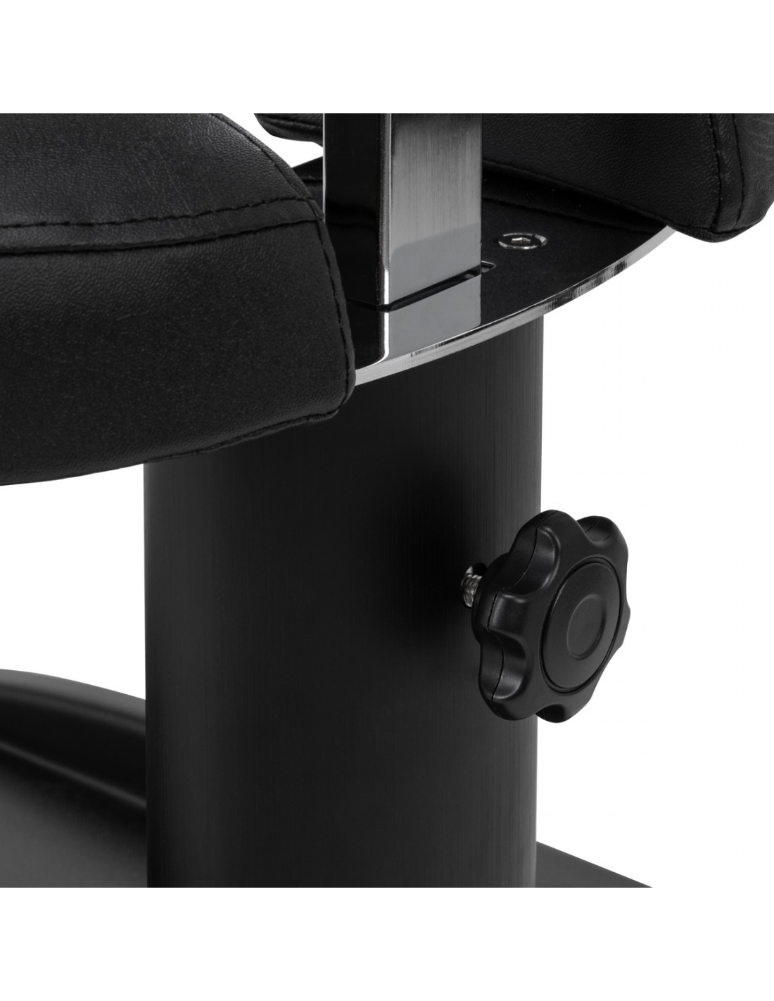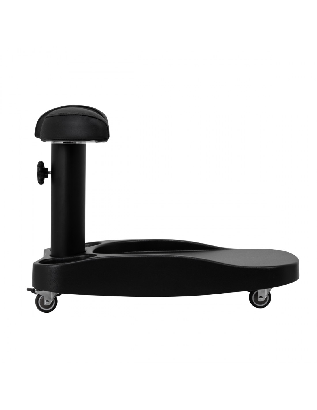 The footrest is made up of three parts, of which the middle one is extendable. Manual height adjustment allows it to be raised by a maximum of 20 cm. All elements of the footrest are upholstered with synthetic leather, which ensures resistance to moisture and ease of cleaning. As a result, the trolley can be adjusted to the individual needs of the user, which makes it an excellent solution for both cosmetic and podiatric treatments, ensuring comfort and precision of work in various positions.