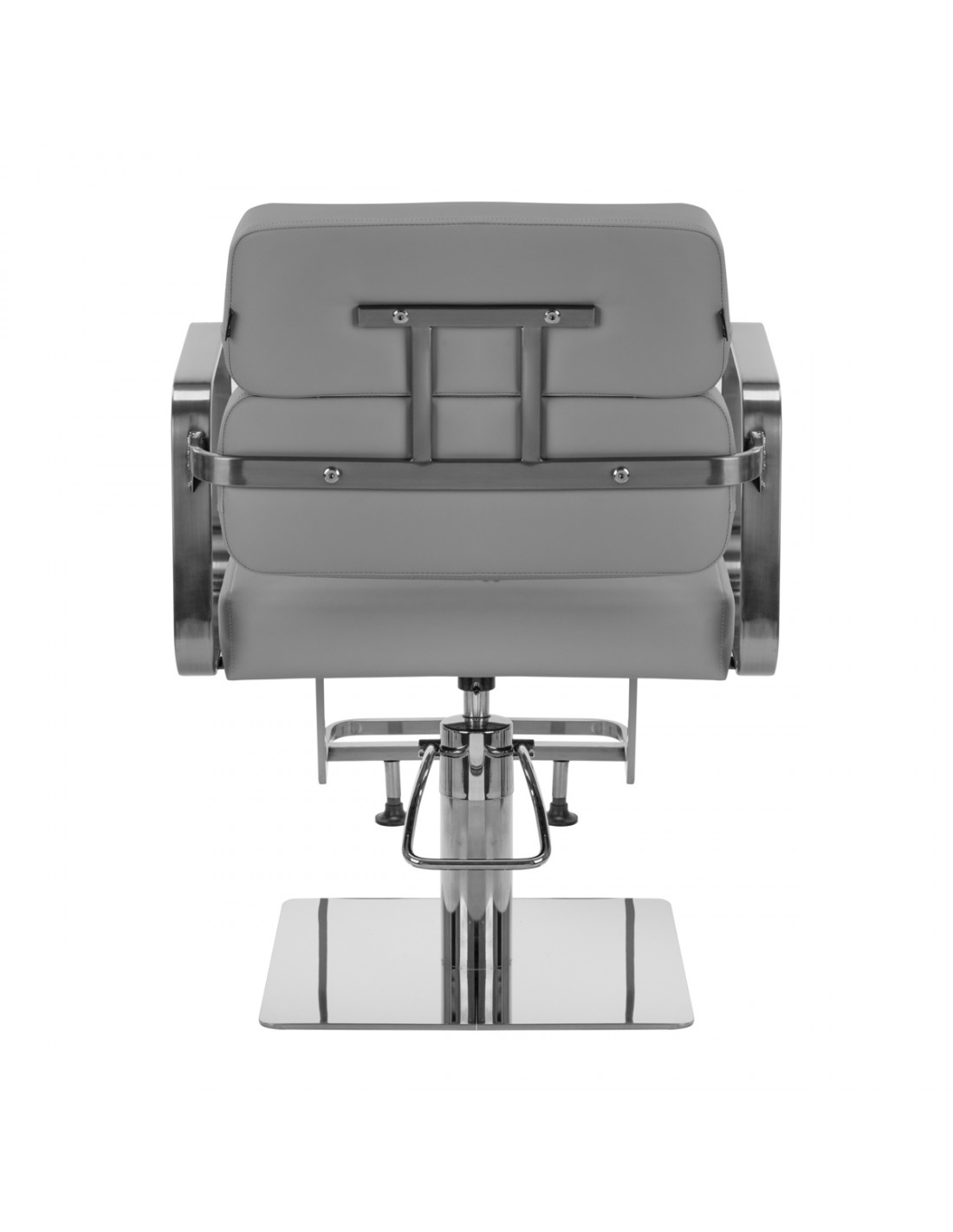 The full rotation mechanism of the chair makes the hairdresser's work more effective and comfortable. A solid, flat, square-shaped base guarantees stability during use. The matte-finished, smooth surface gives the element an elegant look and makes it easy to keep clean. A comfortable seat with foam filling ensures high comfort of use, even during many hours of treatments. Geometric, metal armrests allow for the correct positioning of the client's shoulders – this means that he does not bury his head in his shoulders or slouch – which makes it much easier to perform precise treatments, including haircuts. A stylish footrest dedicated to this model provides stable support for the user's feet.
