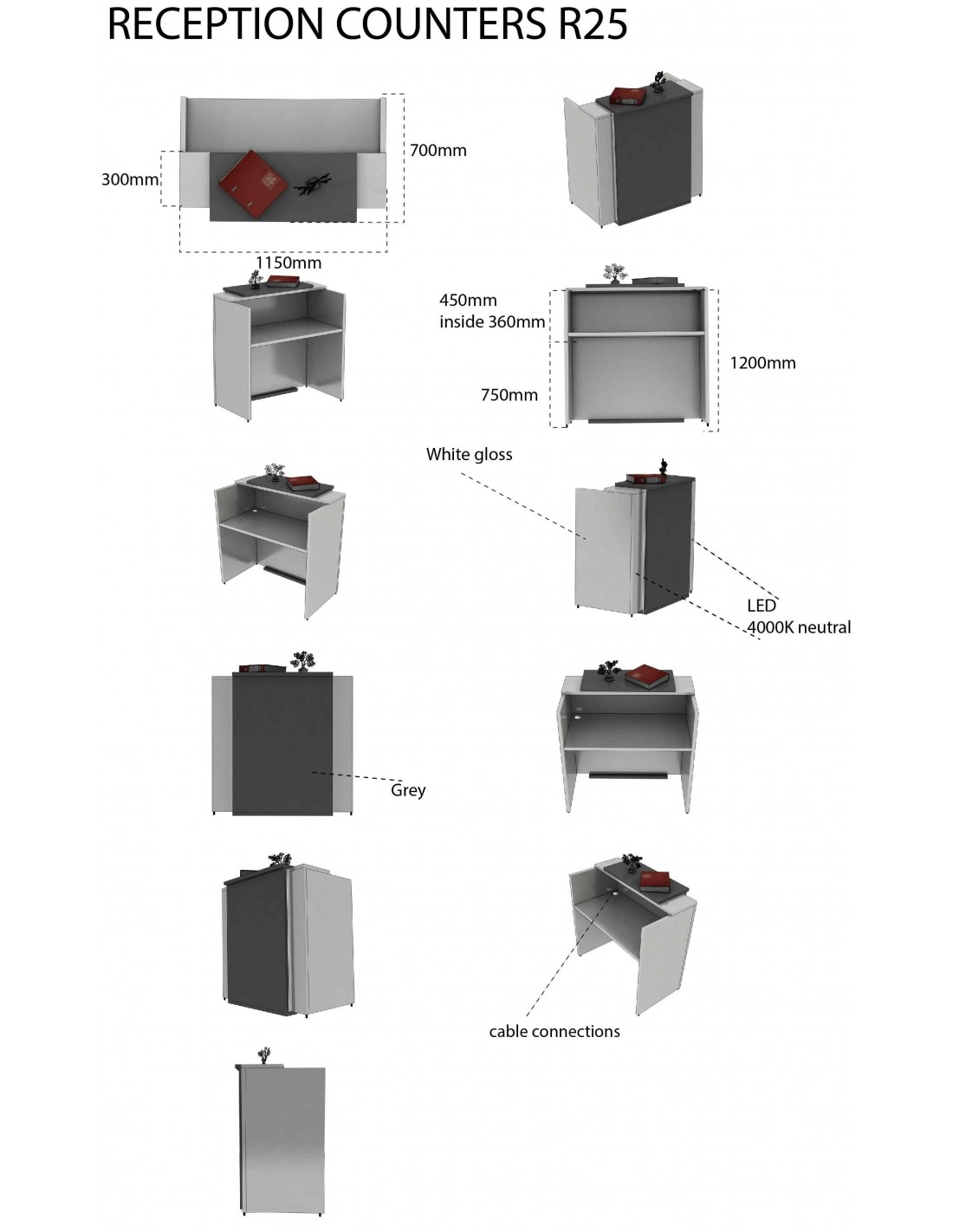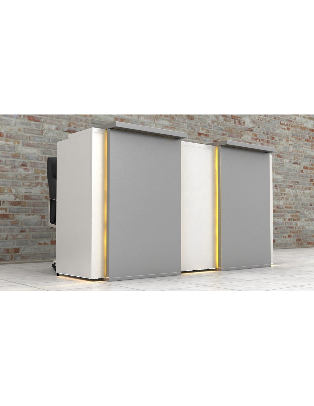 granting privacy to the receptionist. The adjustable feet allowing the levelling of the reception