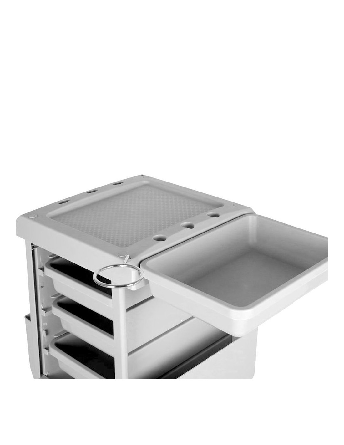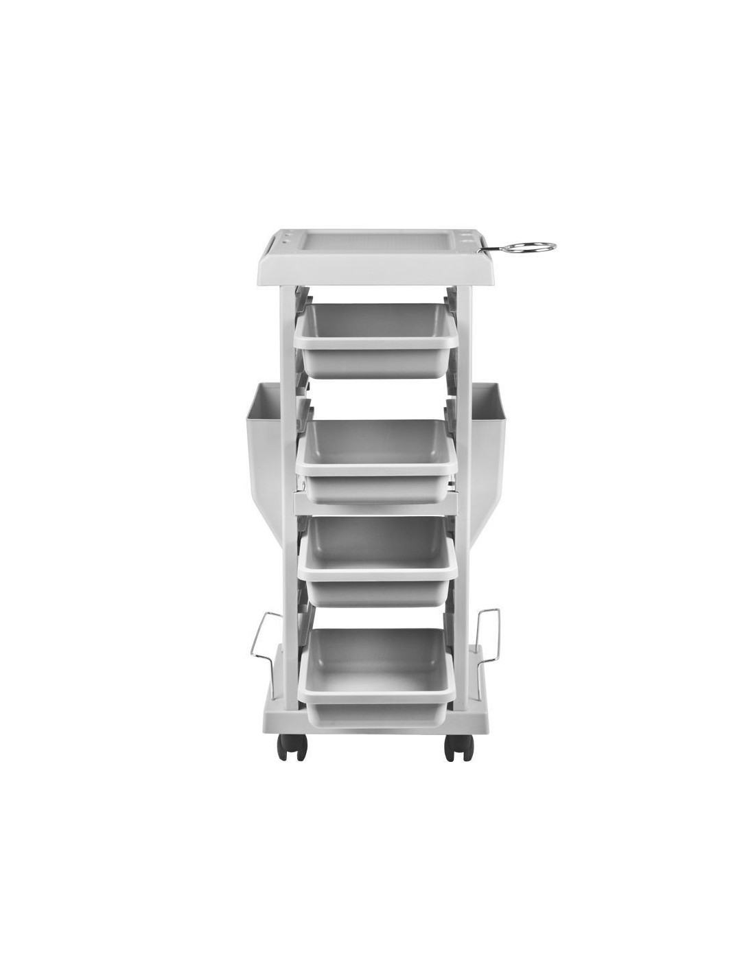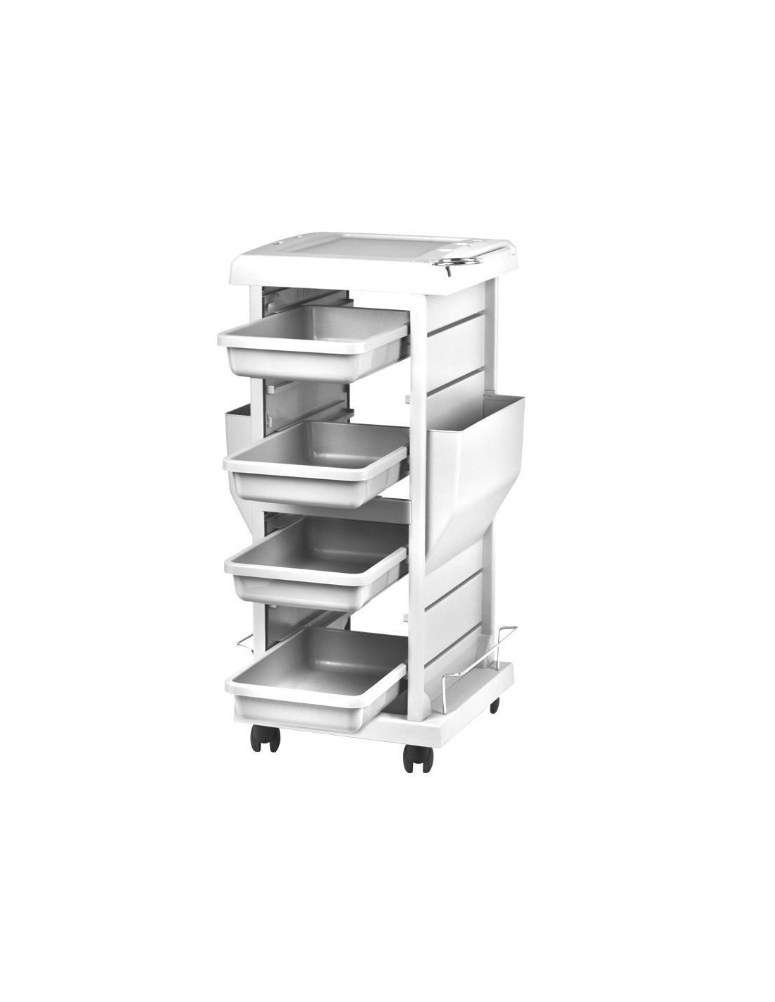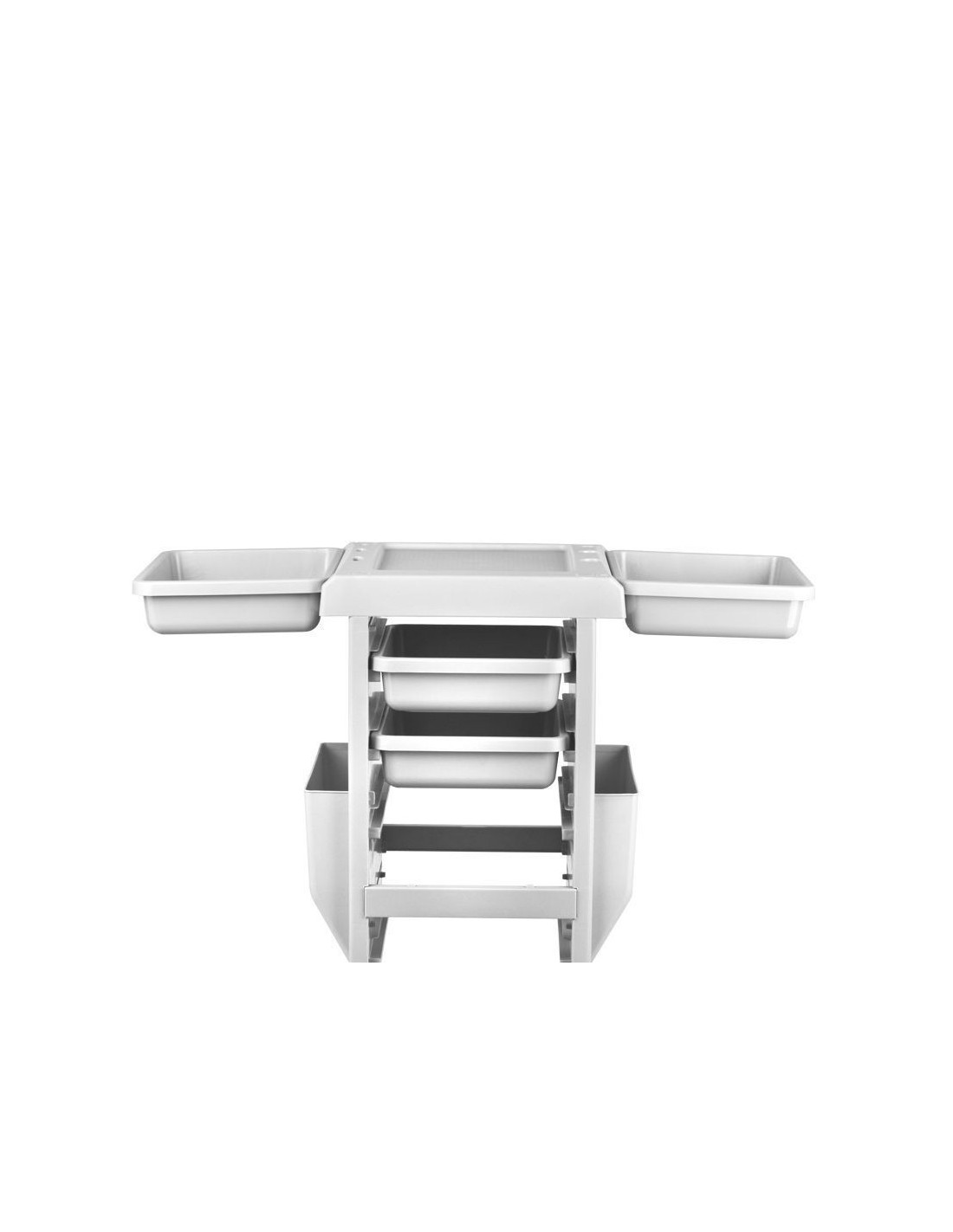 The hairdresser's trolley has 4 removable capacious cuvettes and 2 side pockets. Stable construction will ensure long-term use. Table mounted on wheels, thanks to which tools will always be at hand.