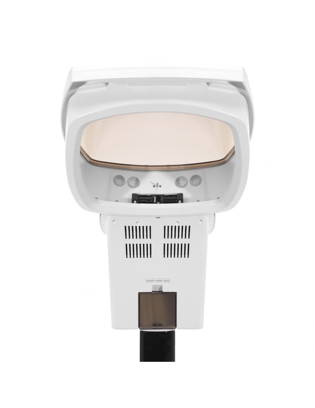 The easy-to-use device uses water vapor, which facilitates the absorption of conditioning substances and makes the hair soft and highly moisturized. The heat released from the water vapor stimulates microcirculation of the scalp and facilitates the transport of essential nutrients. This increases the comfort and satisfaction of the client undergoing treatment. The use of such a solution also has a positive effect on the scalp, and the hair becomes stronger and has less tendency to fall out. The device is equipped with a tank with a capacity of almost two liters for clean water and a smaller collecting container for water that condenses during treatments. The sauna is equipped with a system that informs about the lack of water in the tank with a message on the screen and a characteristic sound. The set also includes a special cap with a drawstring that makes it easier to direct steam to the hair.