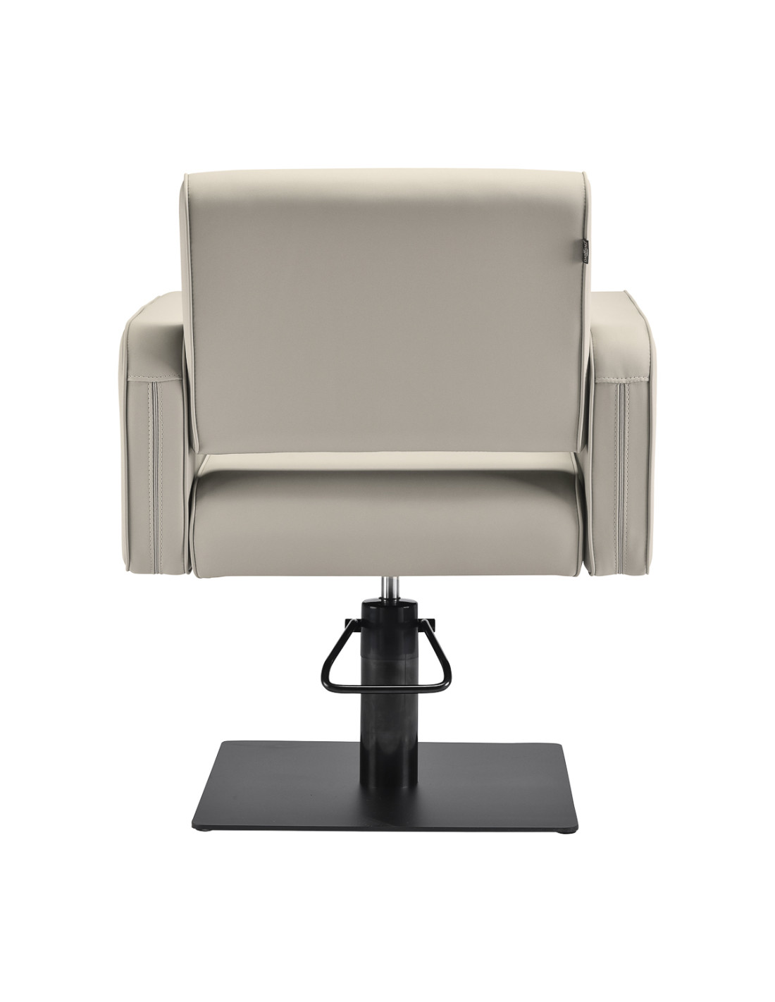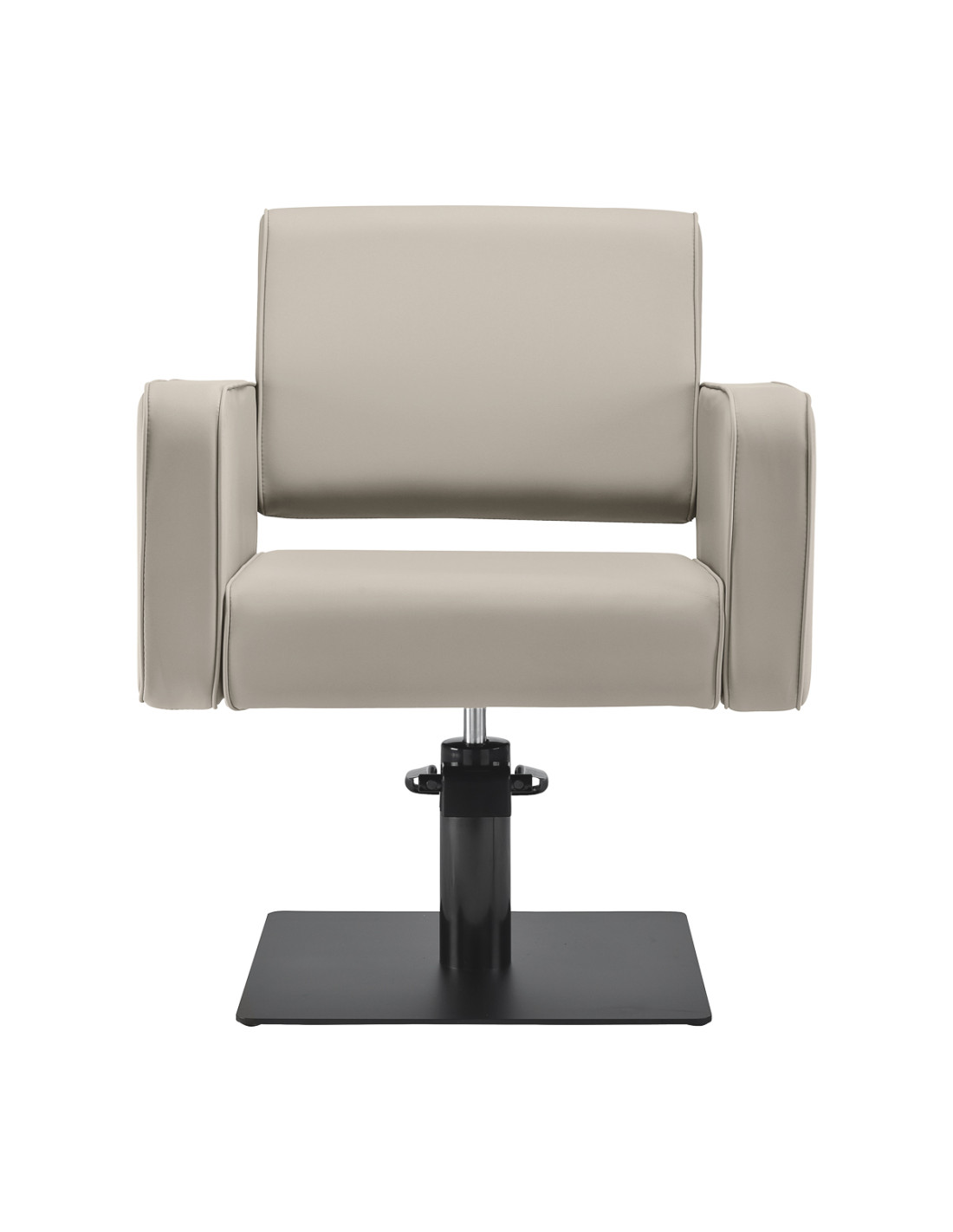The Gabbiano Bilbao Styling chair combines minimalist design with functionality and everyday comfort. Subtly rounded lines give it a light and modern feel, while the stable, square base in matte black emphasises its stylish appearance. The soft padding, combined with pleasant-to-the-touch synthetic leather in shades of grey and beige, ensures comfort even during long treatments. Carefully selected materials ensure durability, moisture resistance, and ease of cleaning. The chair complements both modern and classic interiors, giving the salon a professional character.