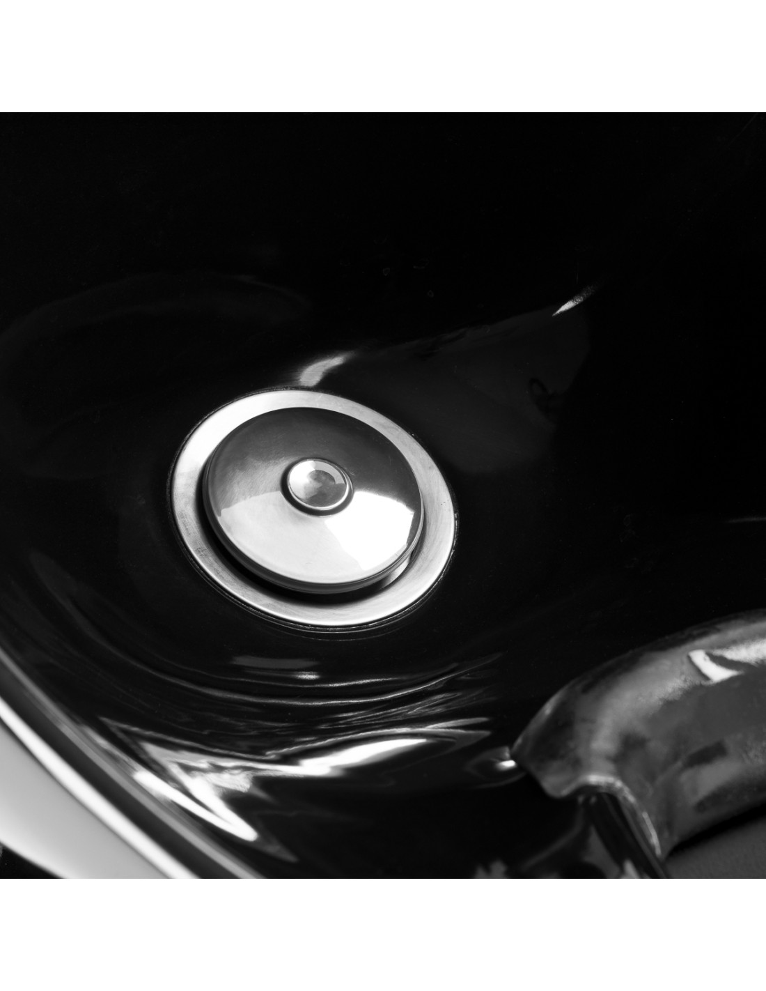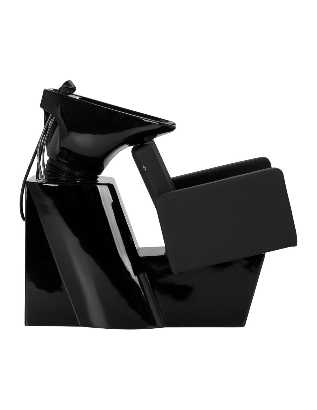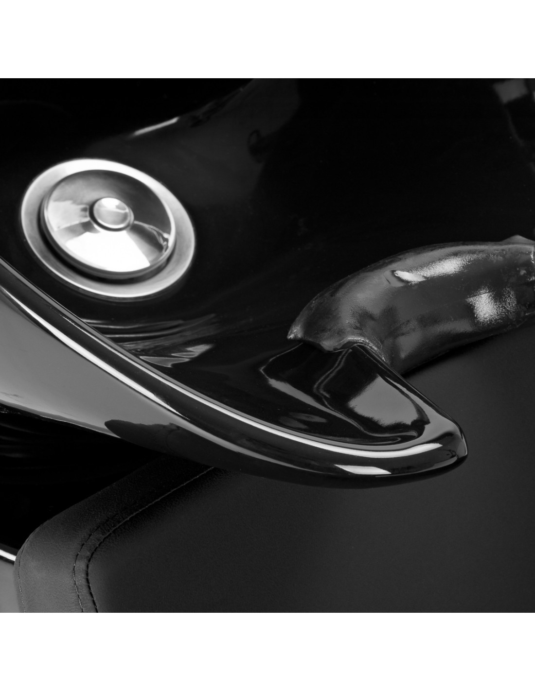 The deep ceramic bowl in shades of black minimises splashing of water and cosmetics during treatments. The adjustable angle of the bowl allows for precise adjustment to the customer's needs. Made of durable material, it is resistant to discolouration, scratches and chemicals, and its smooth surface makes it easy to keep clean. The ergonomically contoured collar provides comfortable head support, and the black plastic cover eliminates the feeling of cold when in contact with the ceramic.