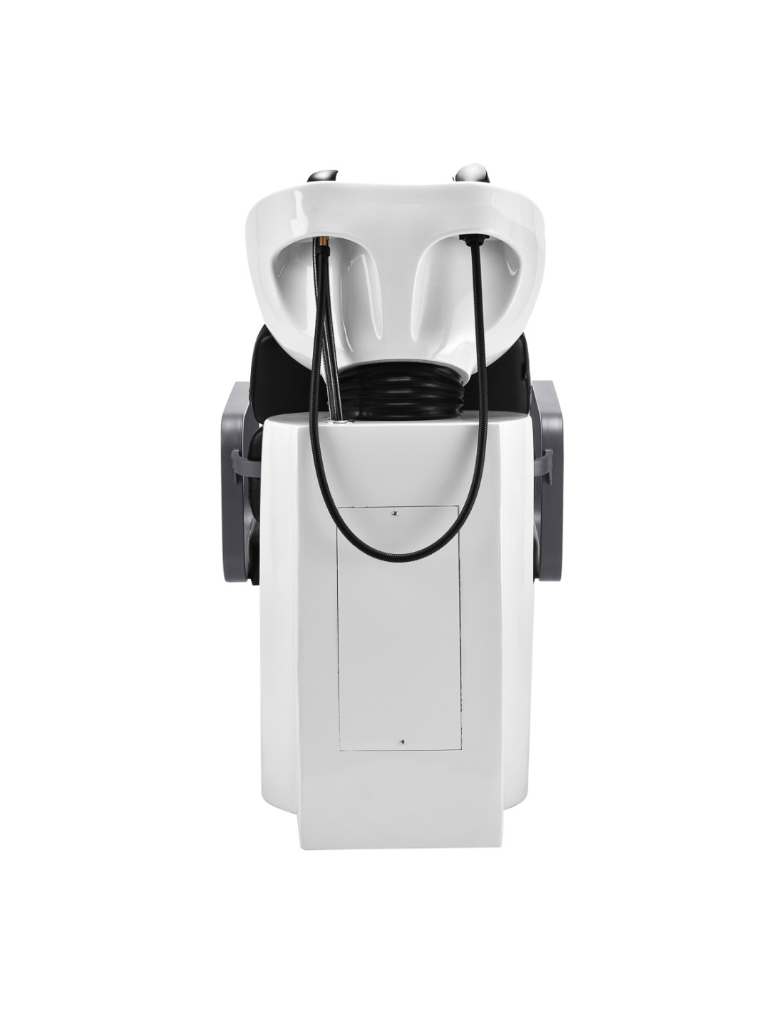 The practical hair wash unit is equipped with a mixer faucet, which provides easy access to hot and cold water. This makes it easier to adjust the temperature to the customer's individual preferences. A dedicated place to hang up the handset makes work easier, and the chrome-plated plug with a special strainer allows you to control the water flow and maintain high hygiene standards in the salon. The water connection has been placed inside the base, allowing the pipes to be easily hidden. A significant advantage of this model is the opening left between the backrest and the seat, which makes it easier to keep the living room clean by allowing you to easily sweep dirt from every nook and cranny of the chair. The hair wash unit has been designed in such a way as to ensure comfort during various treatments, ensuring proper back support. The combination of functionality and amenities makes working in a hairdressing salon even more comfortable.